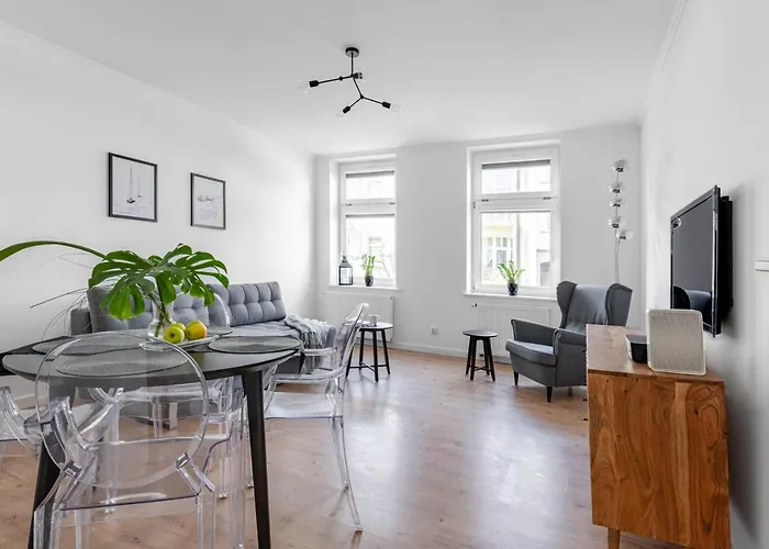 Эти апартаменты расположены в 1 км от центра Сопота и недалеко от Кривого домика. Парк для активного отдыха <<Колибки>> находится в 3 км от этих апартаментов площадью 48 м^2, а аэропорт Международный Гданьск Лех Валенса - менее чем в 30 минутах езды. До Гданьского зоопарка можно доехать за пару минут.